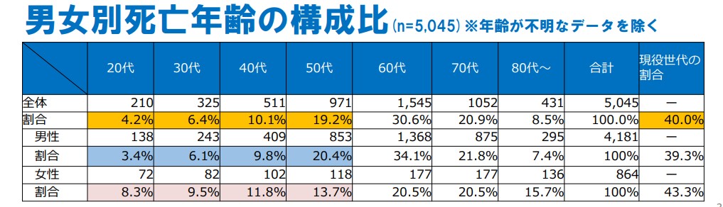 孤独死に関するデータによると、約40%が現役世代である50代以下が占めています。